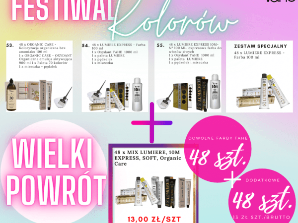 Tahe Polska przygotowała wyjątkową i kolorową akcję Promocyjną i Marketingową na wszystkie koloryzacje z oferty TAHE pod nazwa # FESTIWAL…