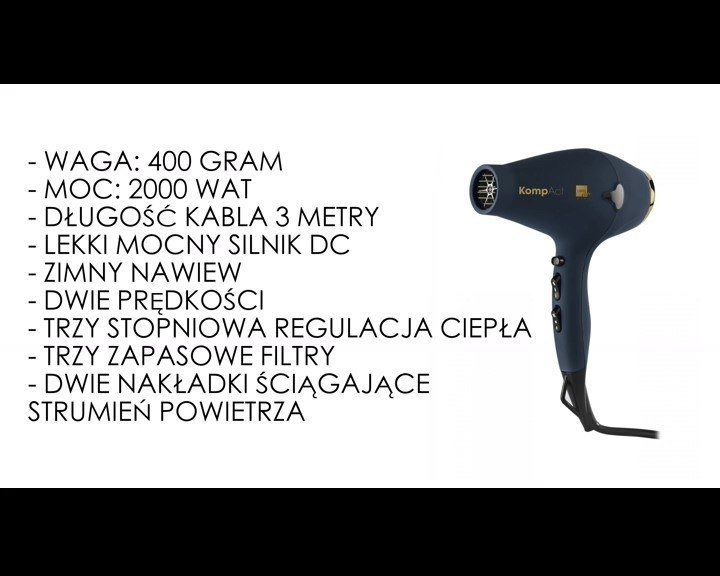 W zestawie znajdują się trzy zapasowe filtry oraz dwie nakładki – dyfuzory, które umożliwiają skierowanie strumienia powietrza w odpowiedni sposób, co jest kluczowe dla stylizacji różnorodnych fryzur.