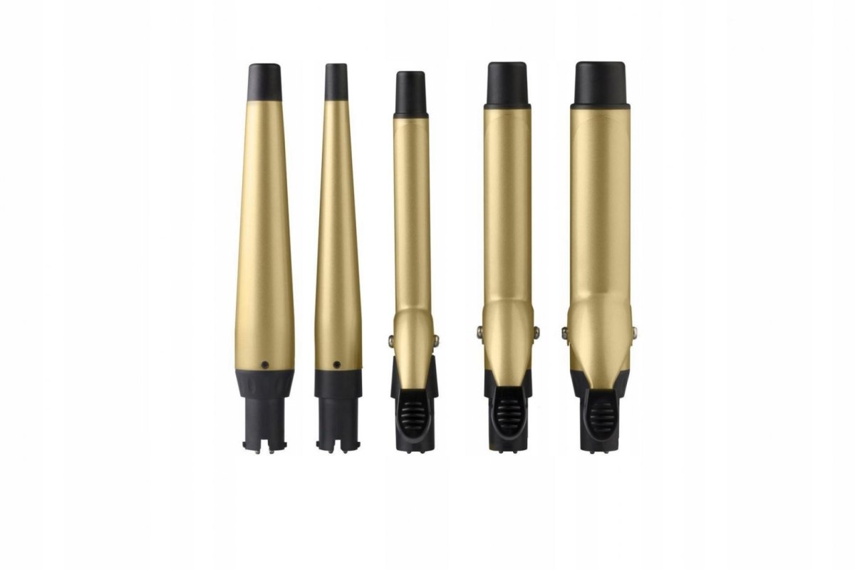W zestawie znajdują się różnorodne wymienne końcówki, które umożliwiają uzyskanie różnych efektów stylizacji: