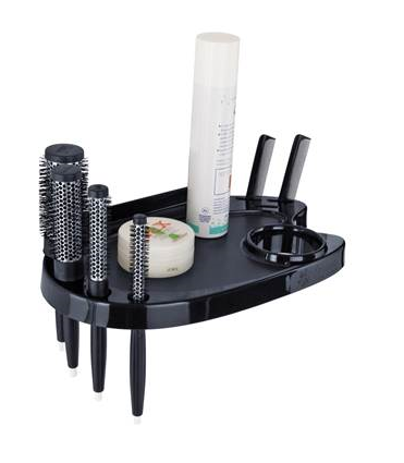 Półka na suszarkę do włosów i narzędzia, którą można przymocować do ściany, obok lustra / stanowiska pracy.