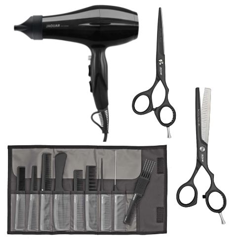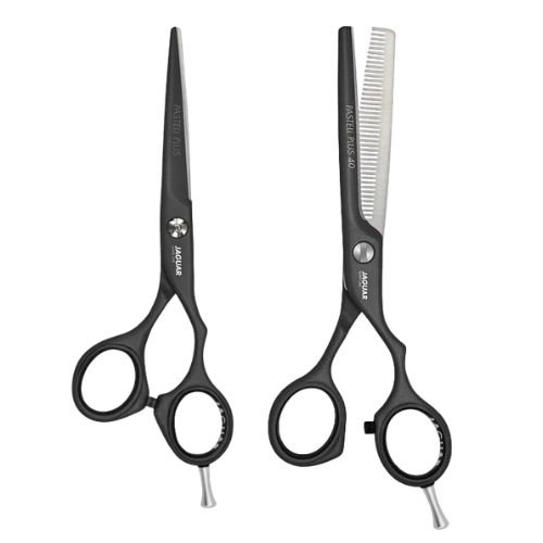 Zestaw narzedzi fryzjerskich JAGUAR ( Suszarka Calima, Zestaw Grzebieni, Nożyczki Pastell Plus Crane 5,5", Degażówki Pastell Plus Crane 5,5")